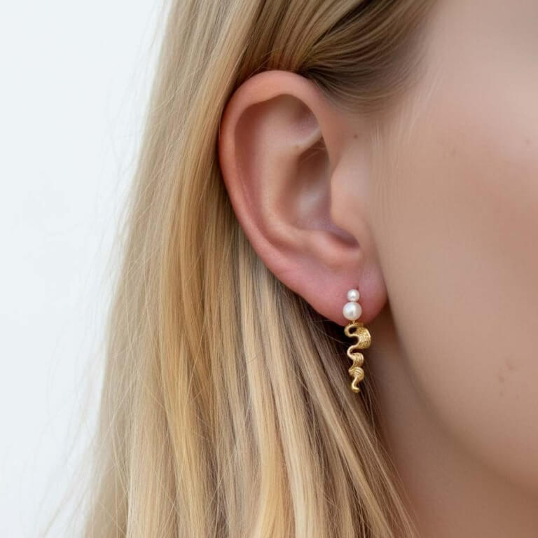 Hedda er et par elegante øreringe med et skønt organisk snoet vedhæng med dynamisk overflade som giver masser af liv. Øverst sidder der to smukke hvide ferskvandsperler. Kombinér dem med andre skønne øreringe fra Hultquist for maksimal effekt.