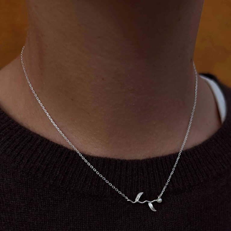 Marigold er en smuk halskæde med et elegant og naturtro gren-vedhæng med organiske blade og en smuk hvid ferskvandsperle. Det elegante design fanger lyset smukt og giver et sofistikeret look, mens materialets kvalitet sikrer komfort og holdbarhed. Perfekt både til hverdagsbrug og særlige lejligheder.