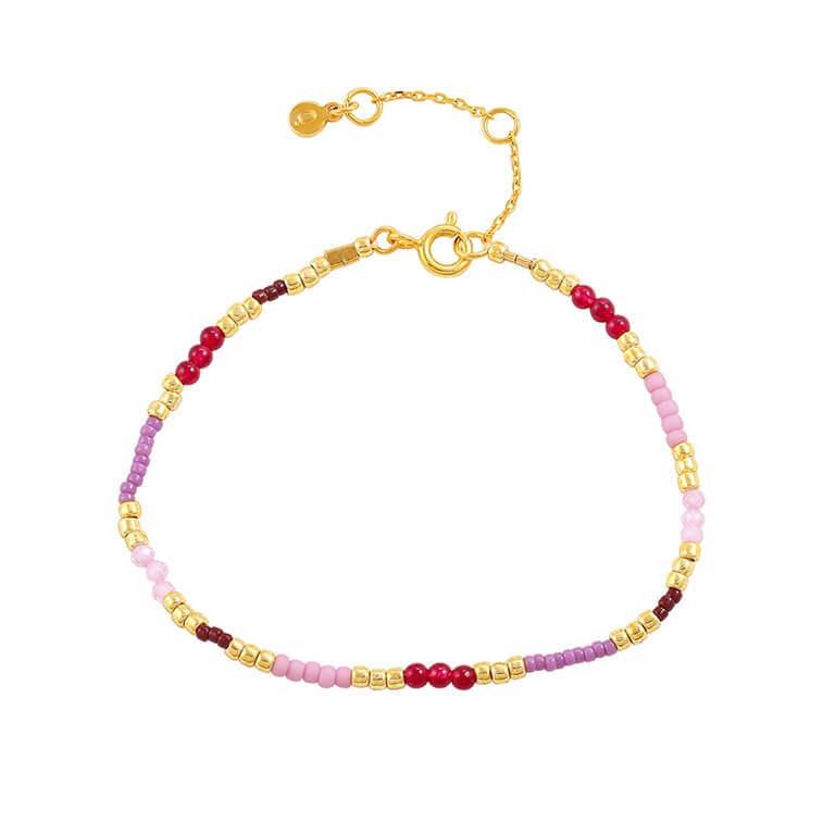 Smukt armbånd i 18 karat forgyldt sterlingsølv prydet med miyukiperler i en skøn farvesammensætning.