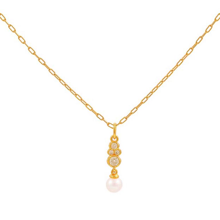Scarlet er en smuk halskæde med et elegant vedhæng prydet med funklende klare zirkoniasten i forskellige størrelser og en smuk hvid ferskvandsperle der hænger frit nederst. Det elegante design fanger lyset smukt og giver et sofistikeret look, mens materialets kvalitet sikrer komfort og holdbarhed. Perfekt både til hverdagsbrug og særlige lejligheder.