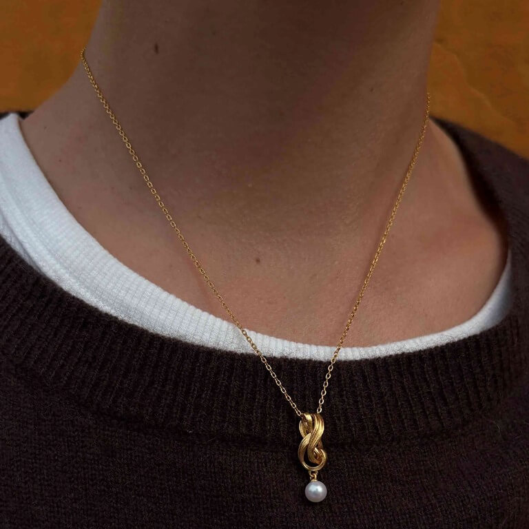 Tiril er en elegant halskæde med et smukt og skulturelt vedhæng. Vedhæng snor sig organisk på fineste vis, og fuldendes med en smuk hvid ferskvandsperle nederst.