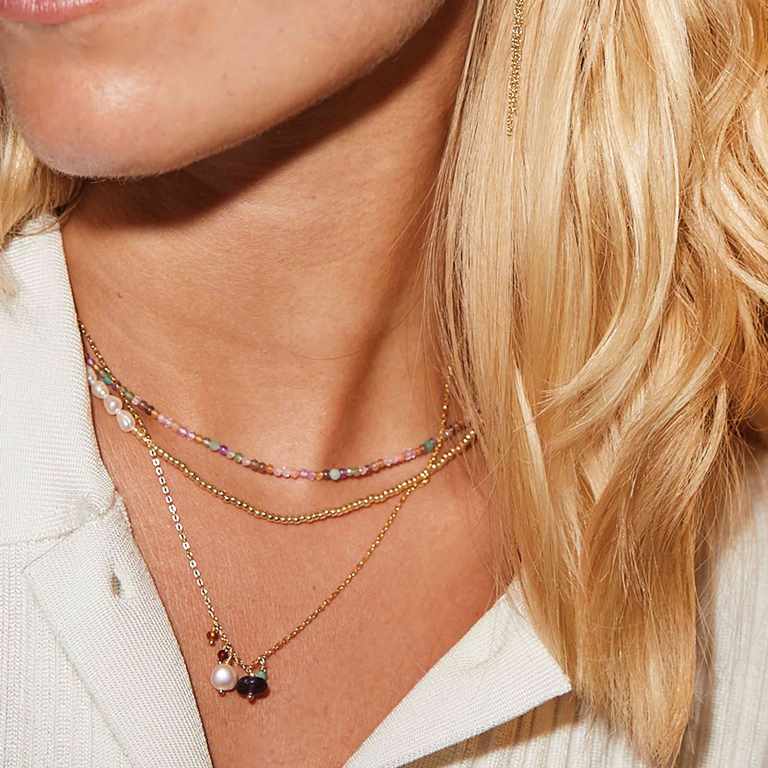 Hultquist Vilma halskæde forgyldt sølv m. farvede sten (38+5cm)