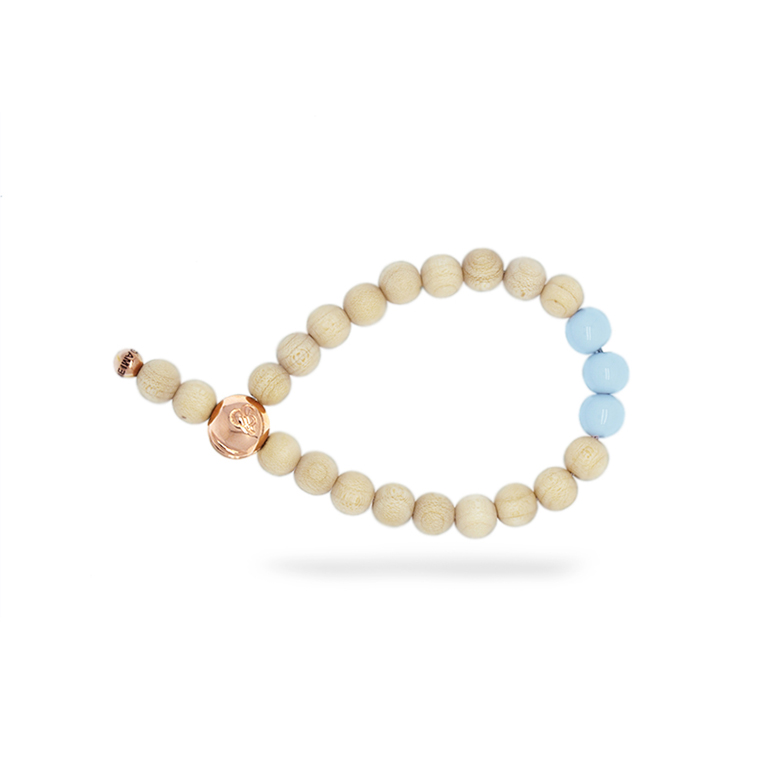 &Imagine armbånd Blue Sky m. 8mm trækugler og emaljebeads rosaforgyldt lås 21 cm