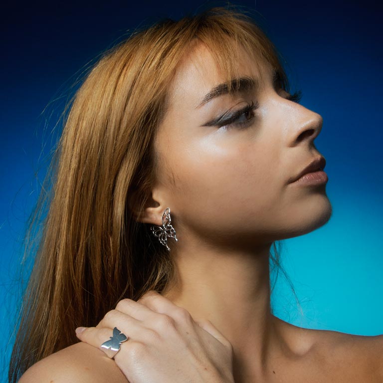 Smuk, unik og elegant Butterfly ørering. Øreringen har en organisk overflade som er med til at fuldende øreringens udtryk.