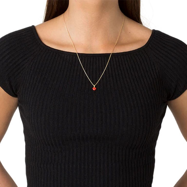 Obs. Vi anbefaler at koralvedhænget ikke kommer i kontakt med vand, da det ellers kan miste sin glans. Da det er et naturligt materiale, vil hjerterne varierere en smule i form og størrelse.