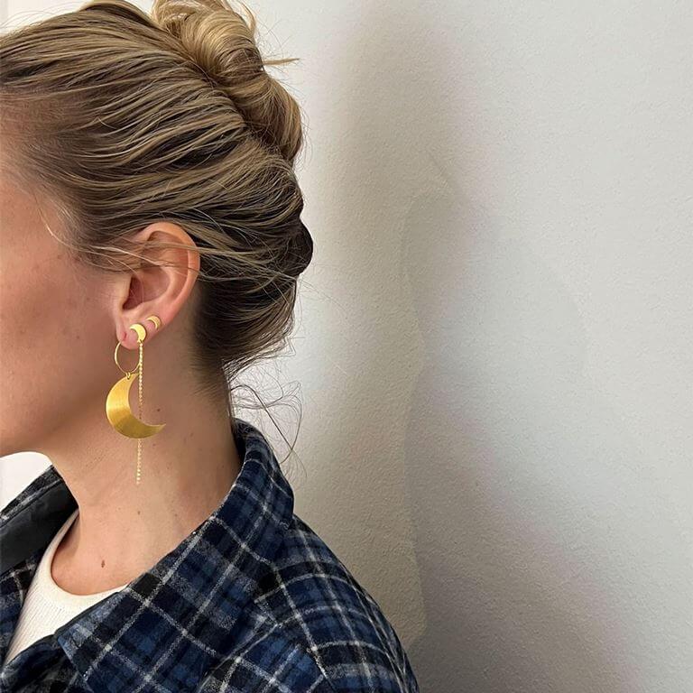 Jane Kønig Half Moon Chain Stud ørering forgyldt sølv (1 stk)