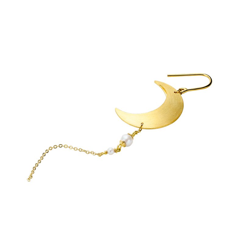 Jane Kønig Half Moon With Pearl Chain ørering forgyldt sølv (1 stk) - Højre