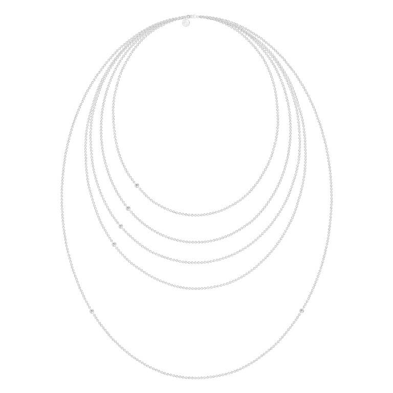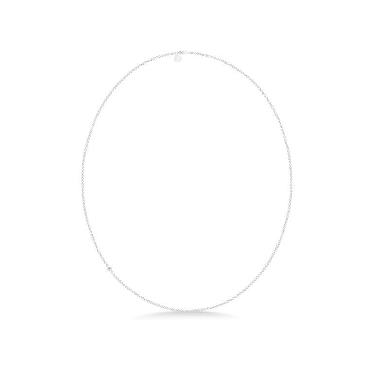 Halskæde i satinrhodineret 925 sterlingsølv med facetslebne zirkoner. Halskæderne fås i følgende længder 40 cm, 45 cm, 50 cm, 60 cm og 80 cm. Længde 40 cm til 50 cm fås med en zirkon og længde 60 cm til 80 cm fås med 2 zirkoner.