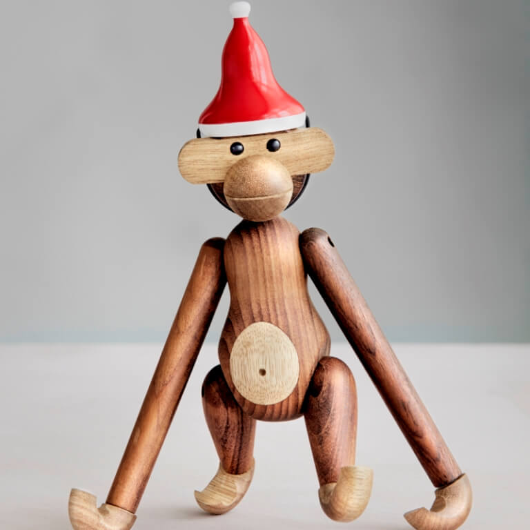 Klæd din Kay Bojesen designklassikere på til jul med denne nissehue i malet bøg, der med garanti spreder julestemning hos hele familien. Nissehuen passer til en af træabe-familiens mindste medlemmer (lille) og mange af de andre dyr, og huen har en højde på 5,4 cm. Den lille nissehue sidder godt fast på abens hoved med den medfølgende elastik. Med sin status som designklassiker er aben elsket af mange og er en god gaveidé. Giv den sammen med nissehuen og skab ekstra julestemning i den søde juletid. Nissehuen kommer i en fin gaveæske.