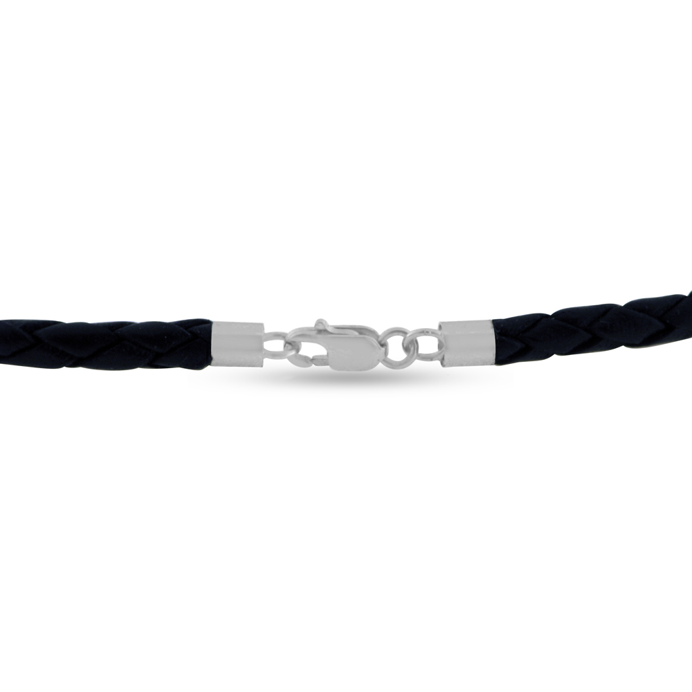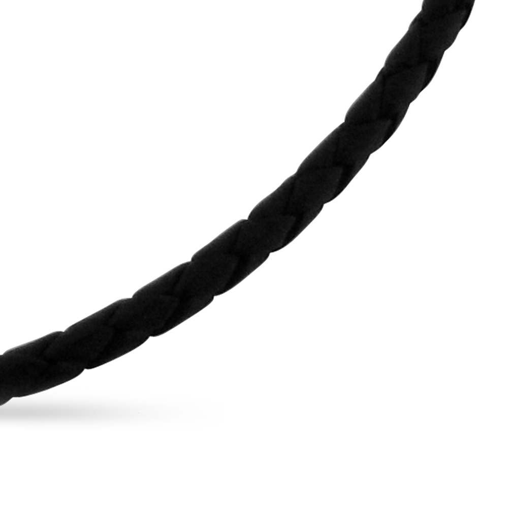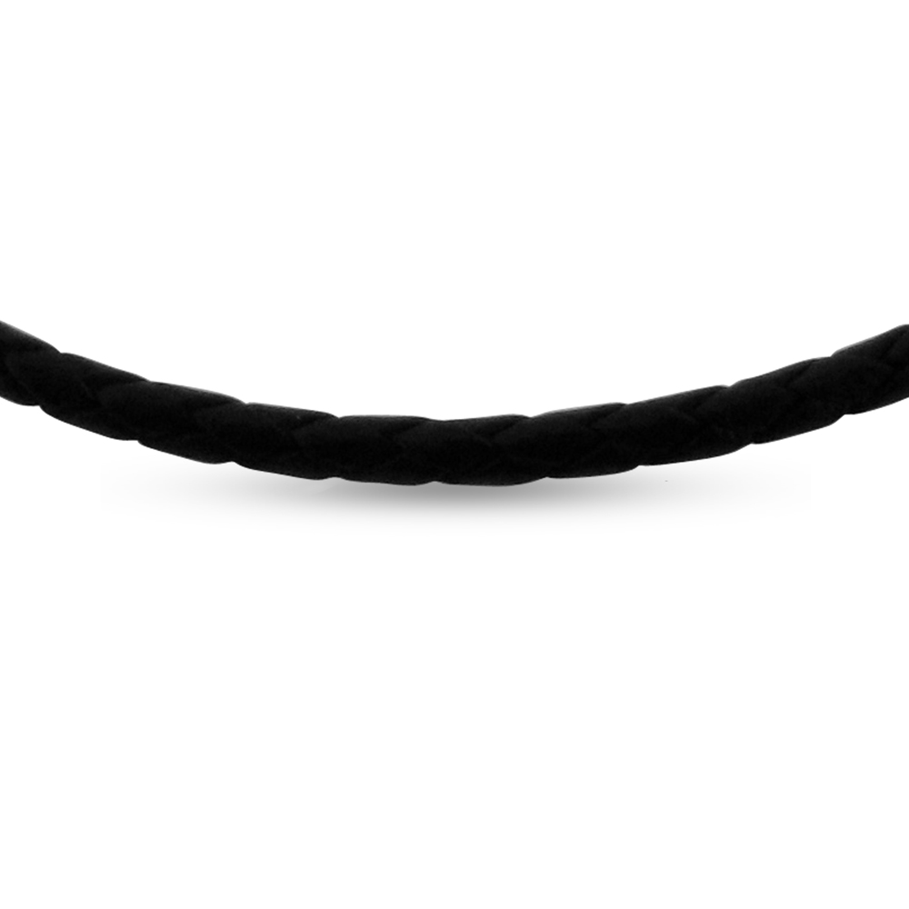 Læder halskæde flettet sort 3,5mm. sølv (50 cm)