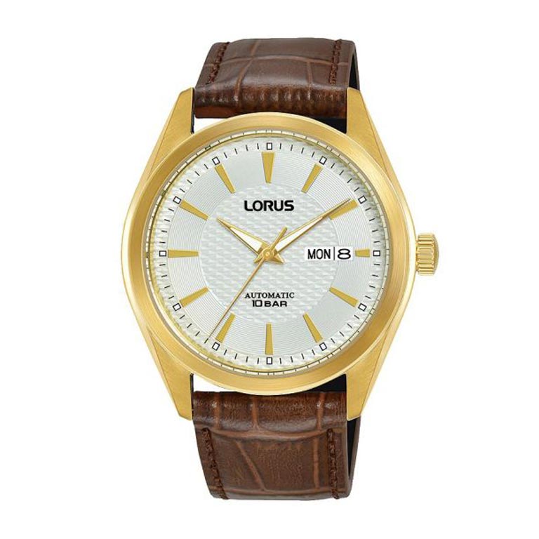 Lorus Classic herreur automatik stål brun læderrem 10bar 44mm