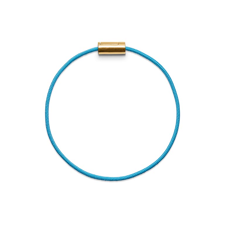 Mads Z Black Sun armbånd, turkis nylon m. 14 kt. guldlås 18,5 cm