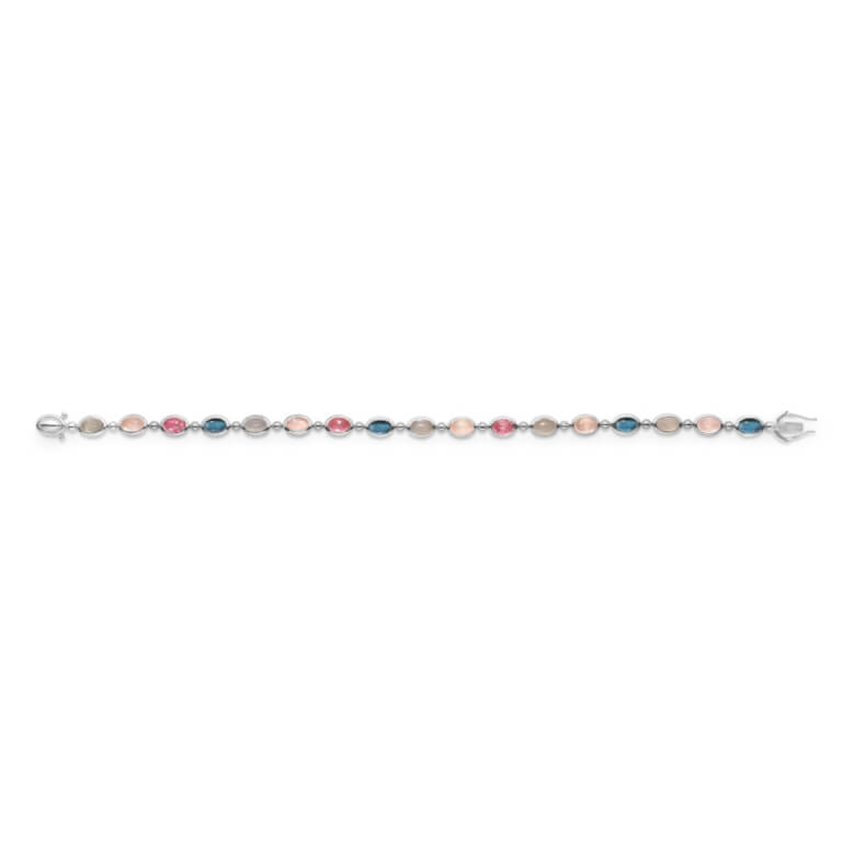 Sten: rosakvarts, månesten, London Blue topas og turmalin.