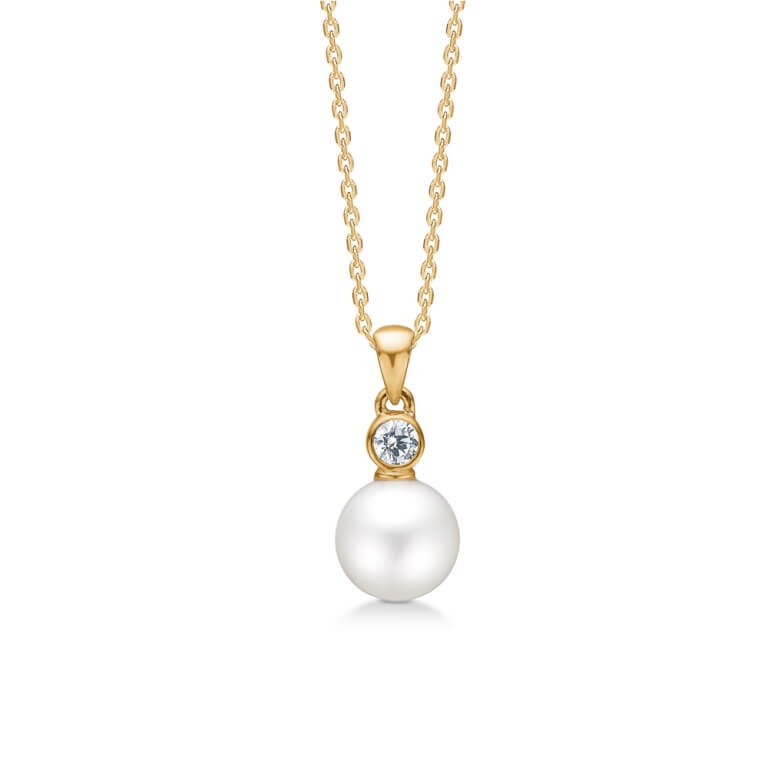 IRIS vedhæng i 8 karat guld med kulturperle og zirkonia.