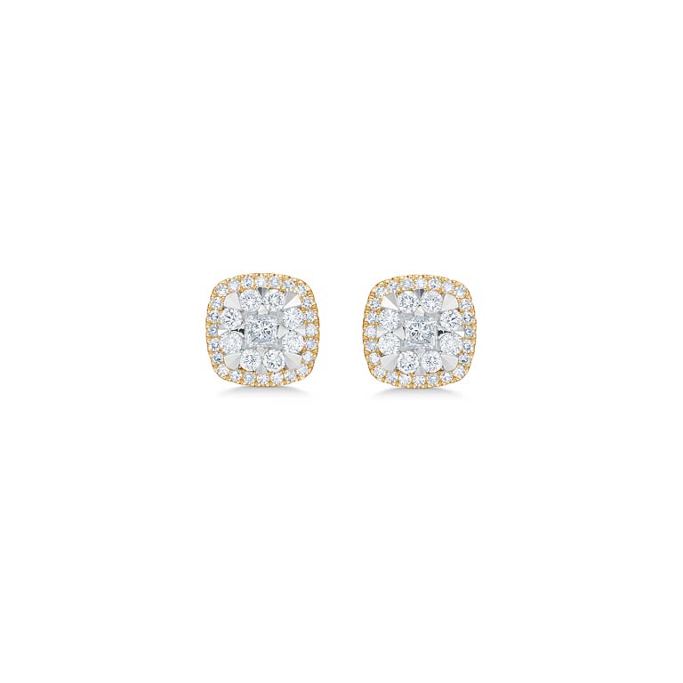 Stellaire øreringe i 14 karat guld med 0,64 ct. brillantslebne diamanter W.SI, designet med balanceret cushion-cluster og mikropavé.