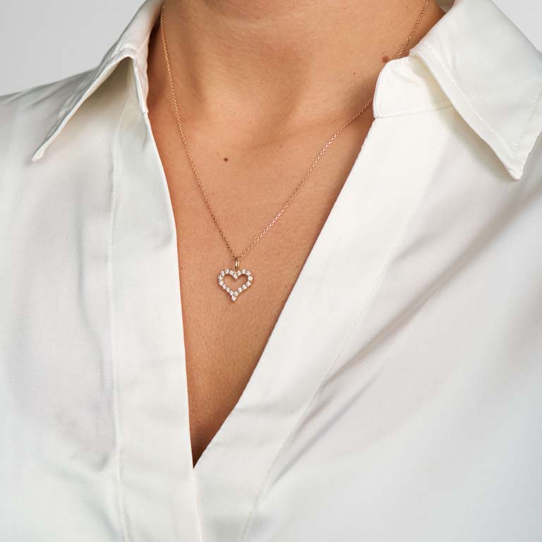 Sødt hjerte vedhæng i 14 kt guld med m. ialt 0,36 ct w/si brillanter