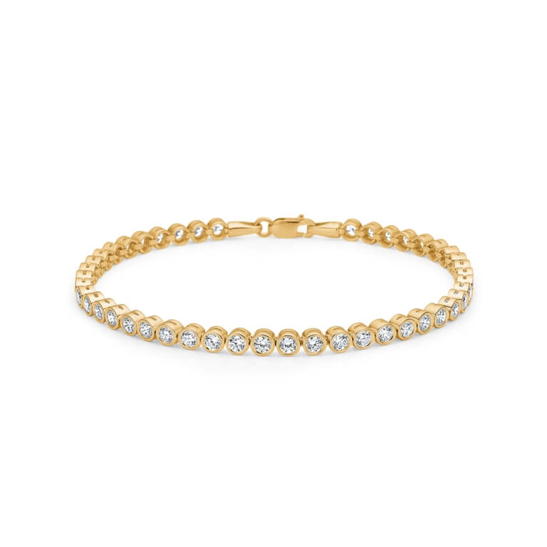 Tennisarmbåndet er et universelt ikon blandt smykker - et mesterværk af luksus og finesse. Navnet udspringer af den legendariske historie om tennisspilleren Chris Evert, der under en US Open turnering tilbage i 1987 tabte sit diamantarmbånd under en kamp. Hun bad om en timeout for at lede efter det, hvilket gav anledning til, at disse smukke armbånd blev kendt som ”tennisarmbånd”. Siden da har de været et ikonisk symbol på både sportslig prestige og en luksuriøs livsstil. Mads Z’s version af Tennisarmbåndet er udført i 8 karat guld isat zirkonia.