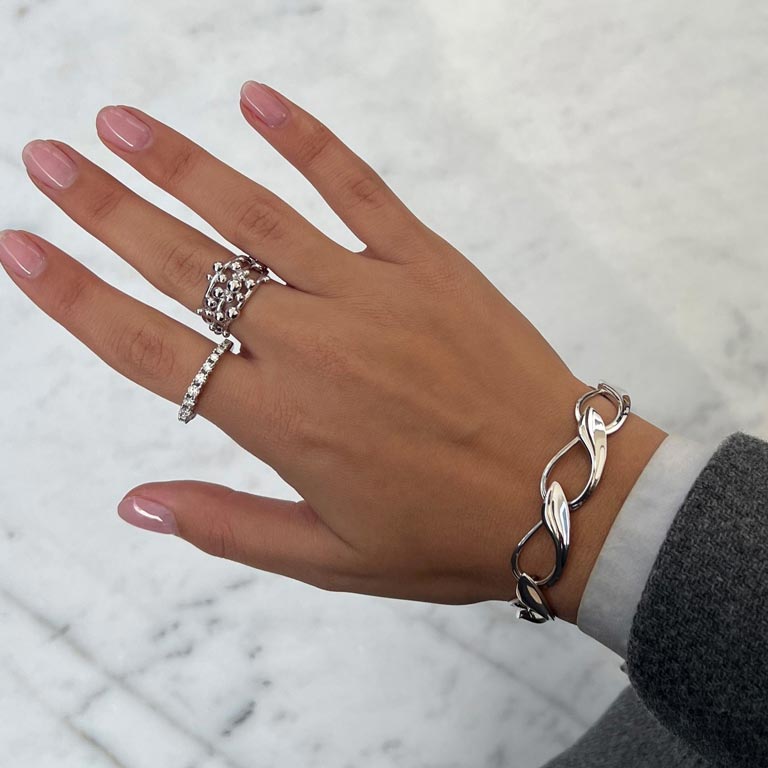 Smukt og elegant armbånd i rhodineret sølv