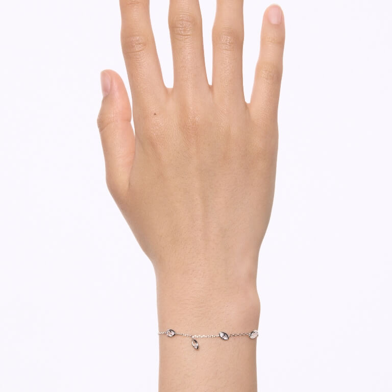 - Delikat kæde-armbånd med flydende hvide zirkonia-sten i marquise- og pæreformede slibninger.