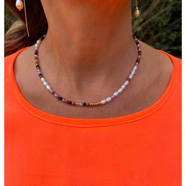 Nuni Copenhagen Bella Multi halskæde forgyldt sølv m. perler (42+5 cm)