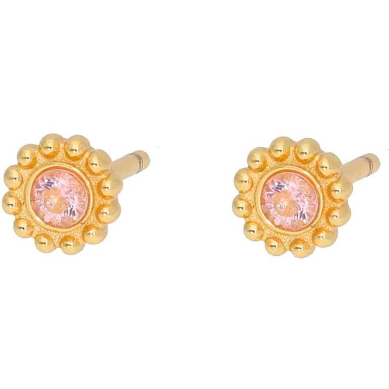Ramona øreringene er et par søde små farverige ørestikker. De er prydet med en funklende pink zirkonia-sten som er omkranset af kugler. En perfekt ørestik til at tilføje noget kulør til dit outfit.