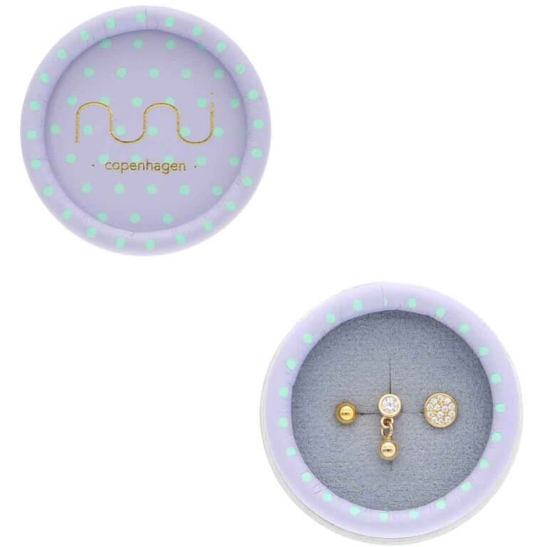 Nuni Copenhagen The Pop Box øreringe forgyldt sølv m. cz (3 STK.)