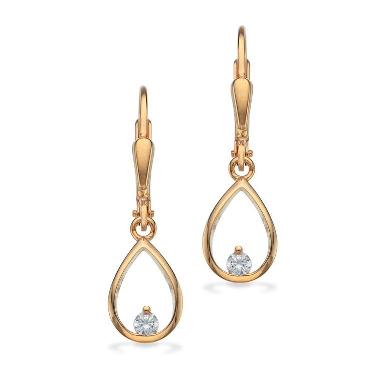 Hver ørering er udført i 8 karat guld og prydet med en skinnende zirkoniasten, som sidder sikkert i en delikat åben indfatning, der giver stenen plads til at glimte fra alle vinkler.
