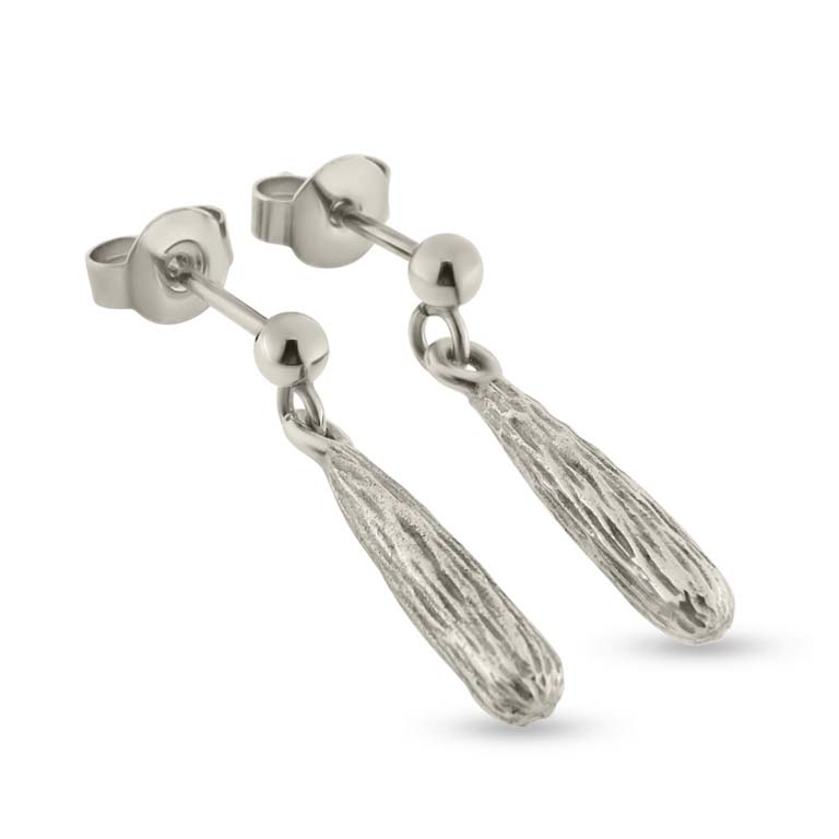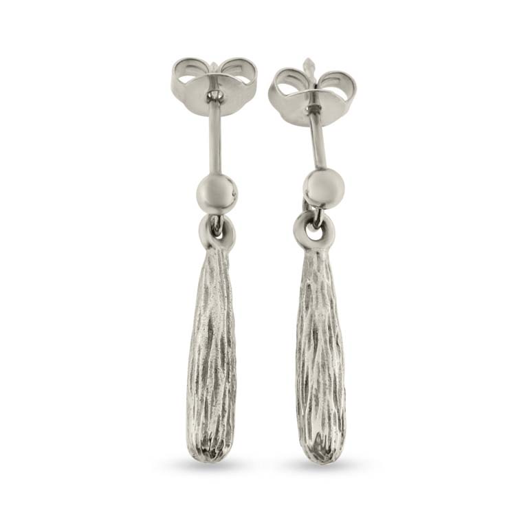Øreringe "Wooden Drop" 14 karat hvidguld