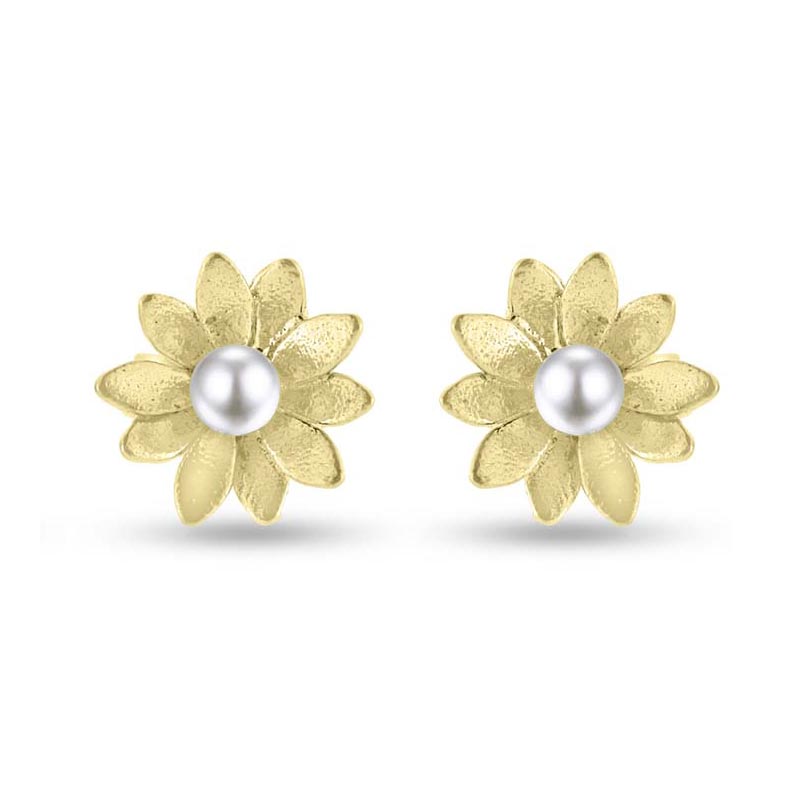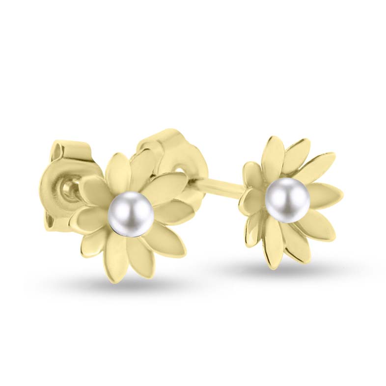 Ørestikker "Pearly Flowers" i 8 karat guld