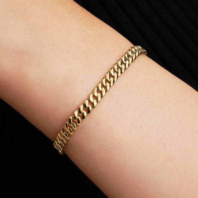 Pift dit look op med et Cubansk Kædearmbånd. Begge sider er belagt med 14 kt. guld og blankpoleret for at få glansen frem. Det har en flad lås, der er præget med PANDORAs logo.