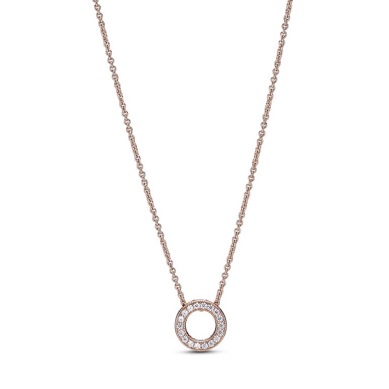 Pandora Logo Pavé Cirkel halskæde med cz rosaforgyldt metalblanding 45 cm