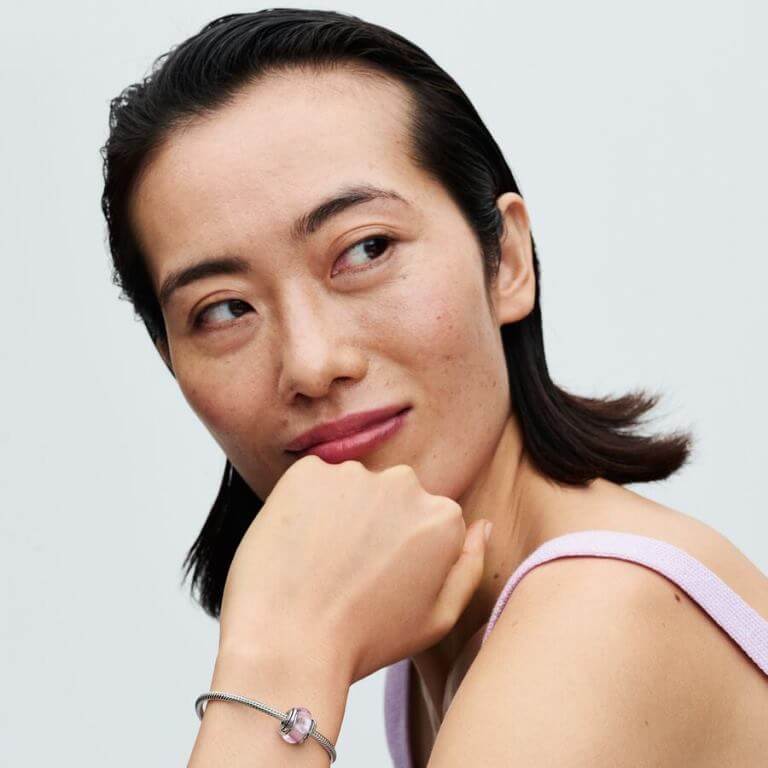 Pandora Moments Omkranset Lyserødt Muranoglas charm sølv