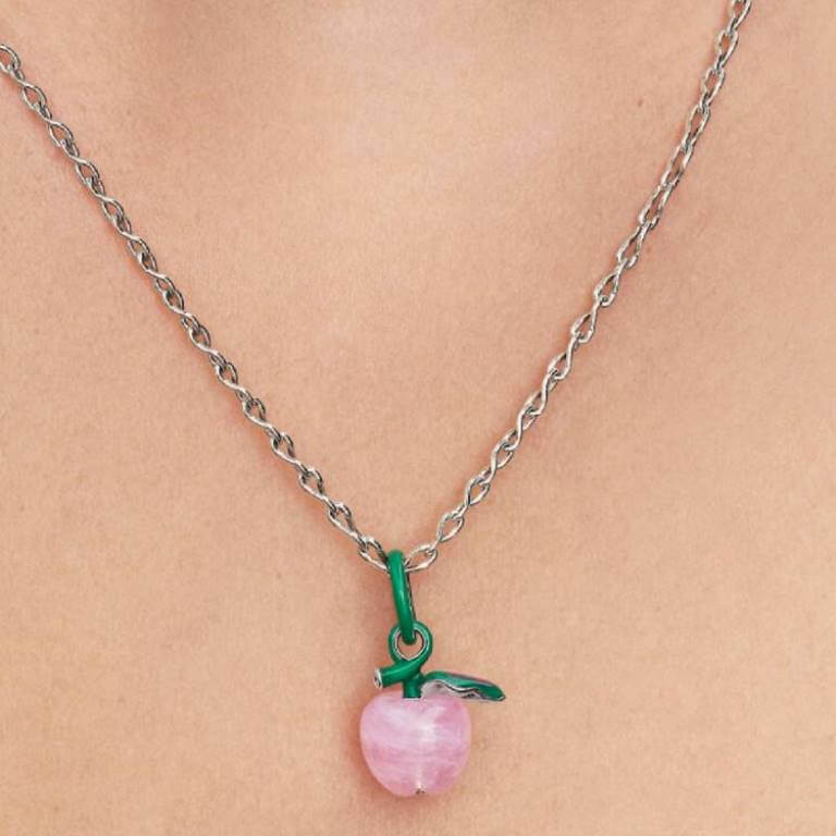 Pluk æbler hver dag med Pandoras charm i pink muranoglas. Charmet er fremstillet i sterlingsølv med detaljer i grøn og pink emalje og er et sødt symbol på visdom og skønhed skabt af naturen.
