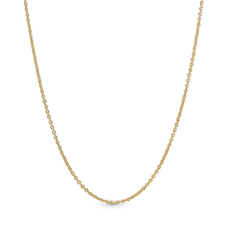 Pandoras klassiske halskæde er belagt med 14 kt. guld og passer perfekt til O Pendants og er også et alsidigt smykke at sætte sammen med andre kæder. Den justerbare længde betyder, at den passer flot til både en høj og lav halsudskæring.