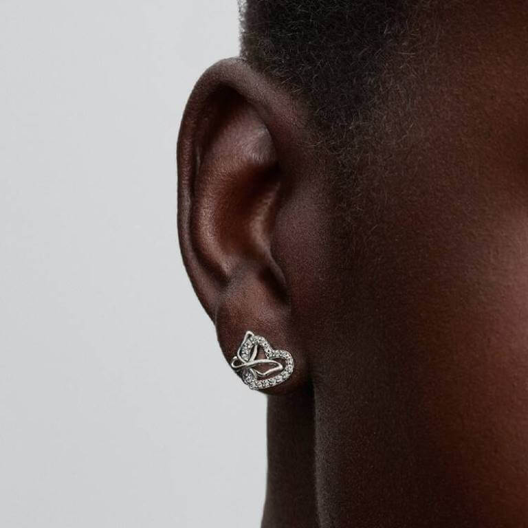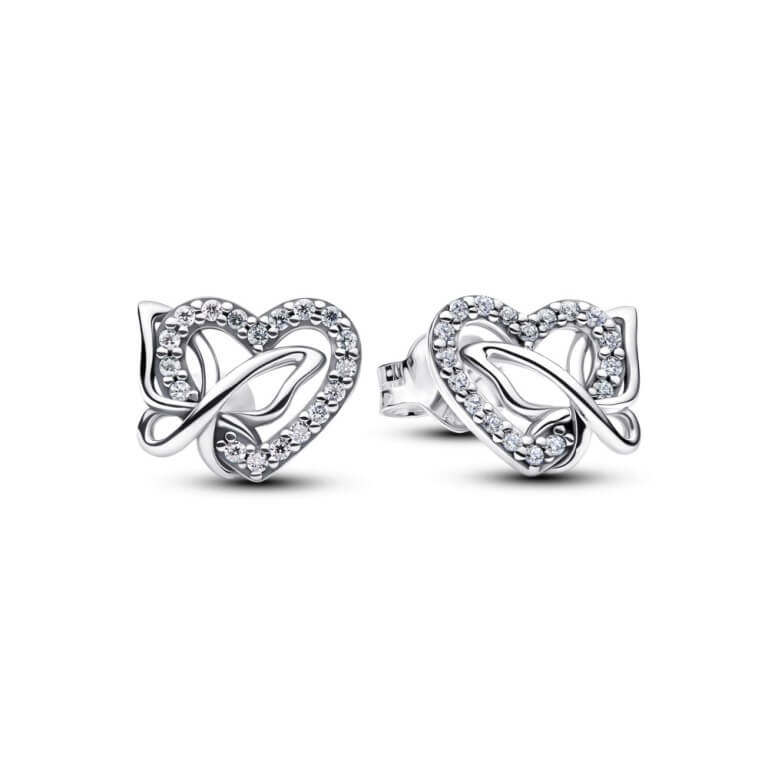 Pandora Sammenflettet Hjerte & Sommerfugl øreringe sølv m. cz