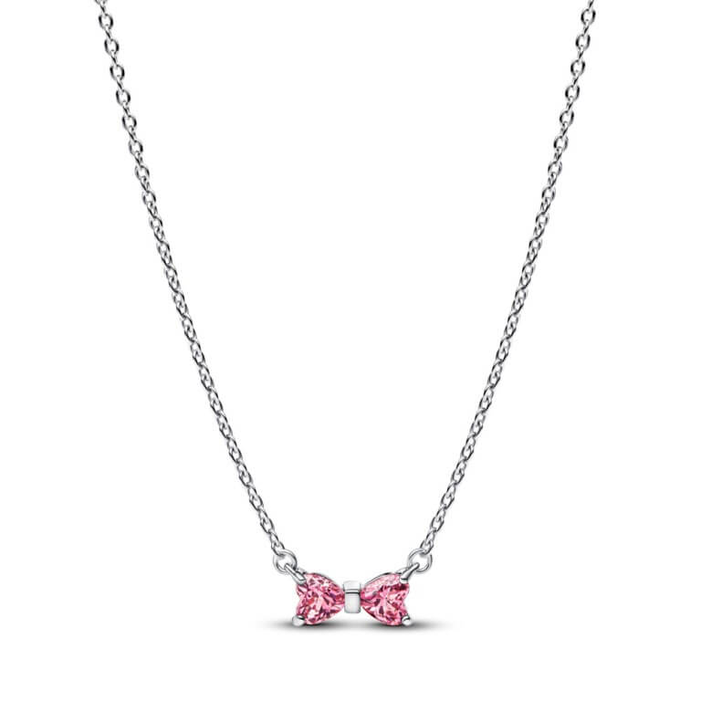 Pandora Sløjfe halskæde sølv m. pink cz (45 cm)