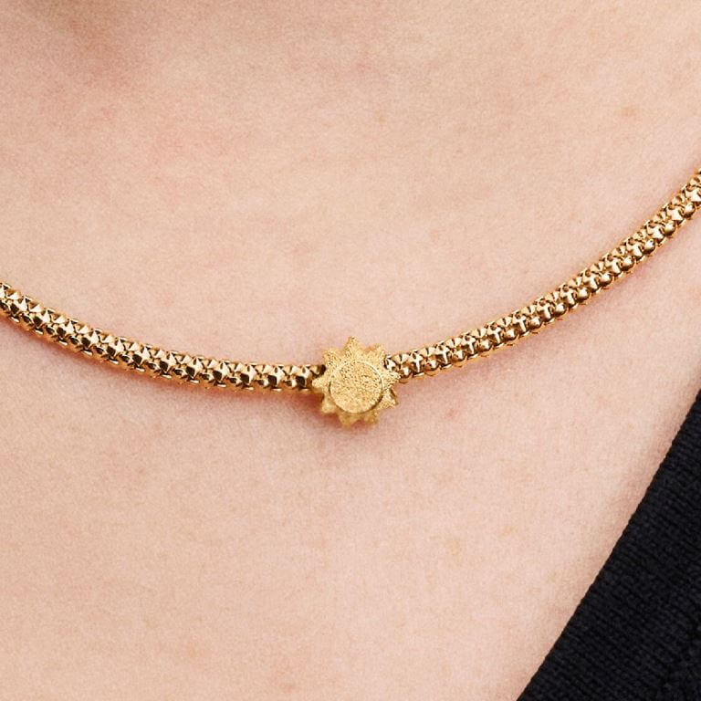 Små symboler gør en stor forskel. Lys rummet op med Pandoras 14 kt. guldbelagte sol-minicharm. Den diamantspidse tekstur minder dig om, at når du udstråler varme, skinner verden tilbage.