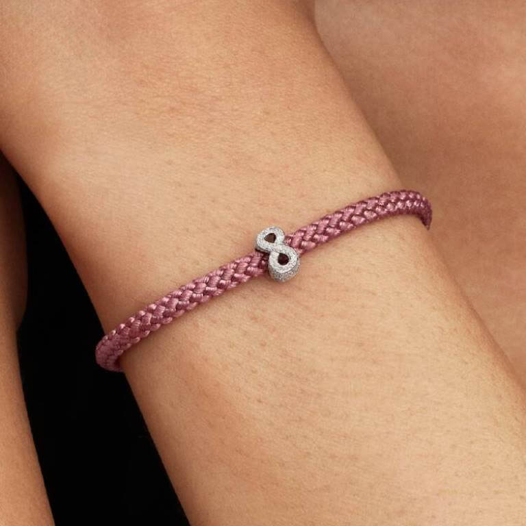 Dette minicharm med uendelighedssymbol i sterlingsølv funkler med en diamantspids tekstur og symboliserer evig kærlighed, samhørighed og skønheden ved livets uendelige muligheder.