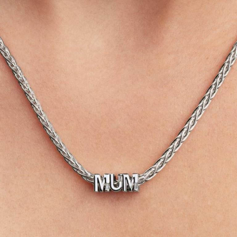 Sig det til mor. Bogstaveligt talt. Hyld moderskabet i alle dets former med dette dristige ordcharm. Hvert bogstav er fremstillet i sterlingsølv og indfattet med en sten i klar kubisk zirkonia, der giver et ekstra strejf af glans.