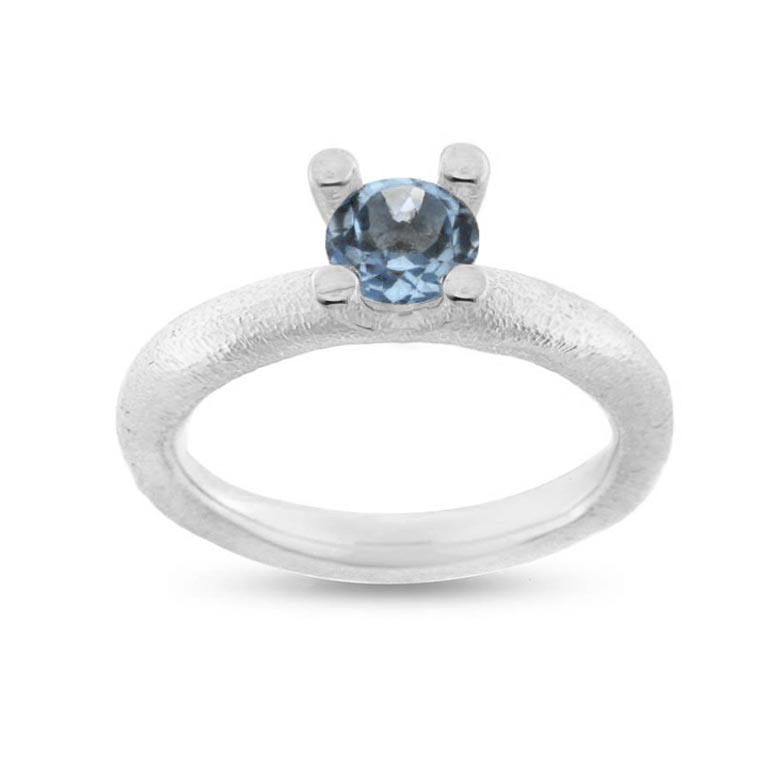 Ring 4 grab. fatning, blå topas (sky blue) 6,0 mm. 925s.
