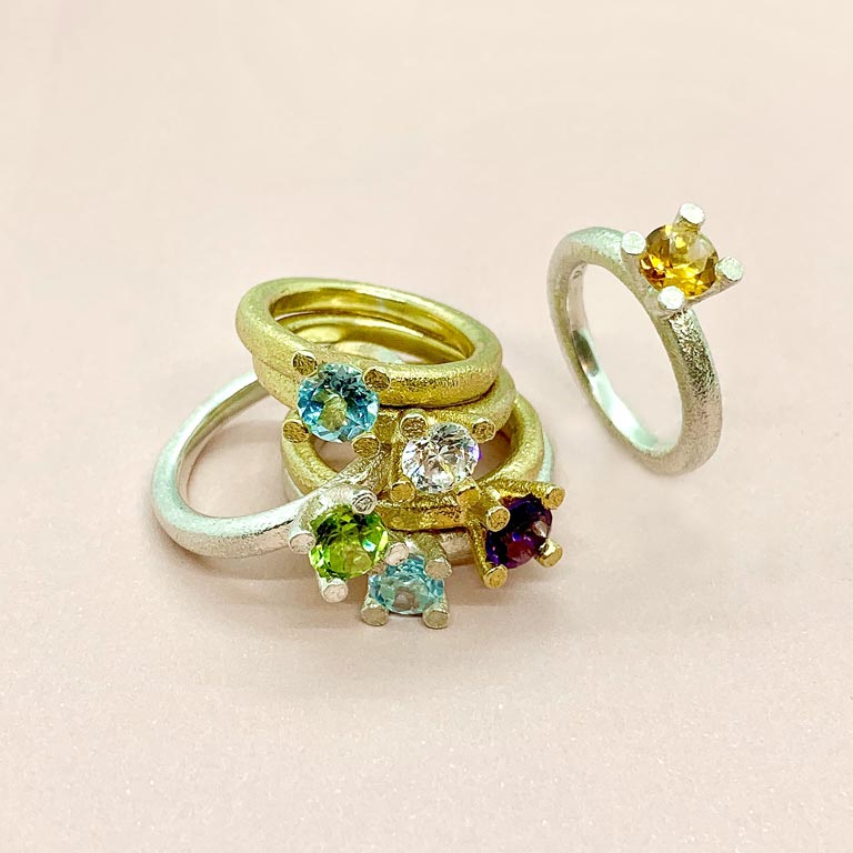 Smuk ring i sølv med en blå topas. Det er muligt at lave ringen med andre sten, se udvalget ovenstående.