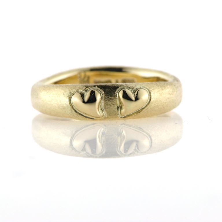 Ring bølget med 2 hjerter 14 kt.