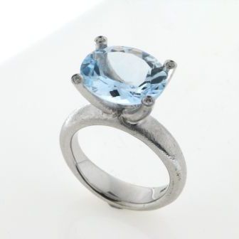 Ring med akvamarin 14*12 mm. (ca. 4,35 ct.)