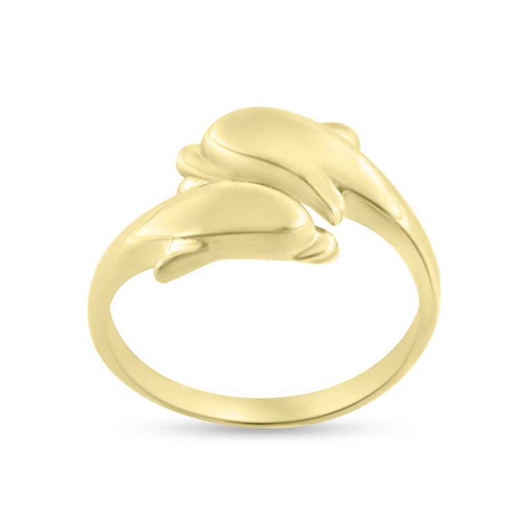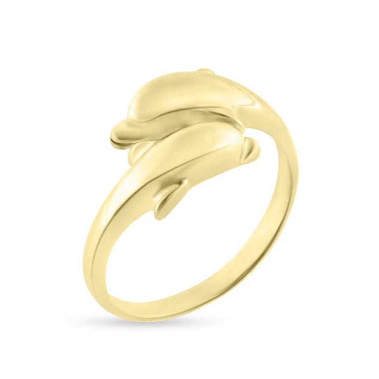 Ring forskudt med 2 delfiner 8 kt.