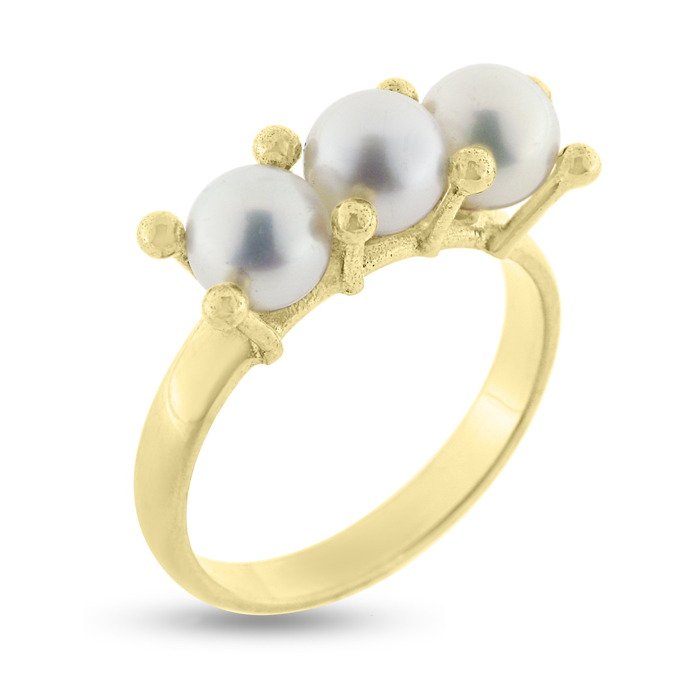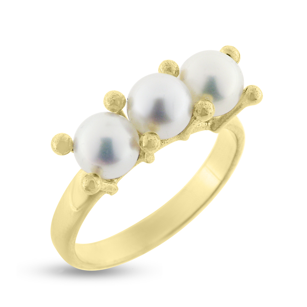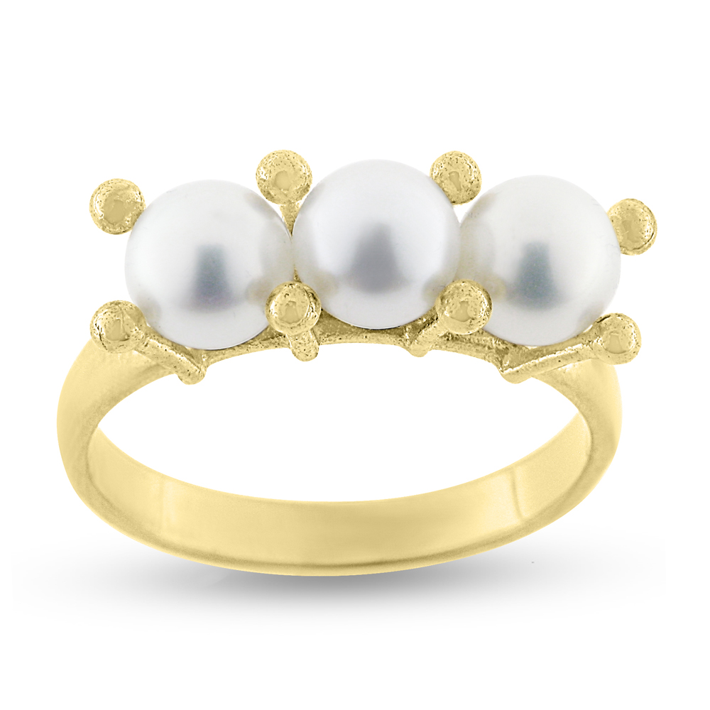 Ring perle 3 ferskvands perler 5mm 925 s. sølv forgyldt (forgyldning vil blive slidt af ved brug !)