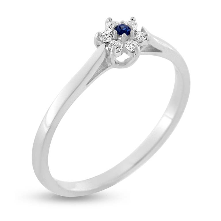 Ring roset safir 0,02 ct. + 6 brill. a 0,015 w/vs 14 kt. hvg.