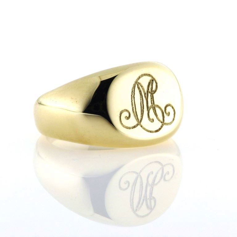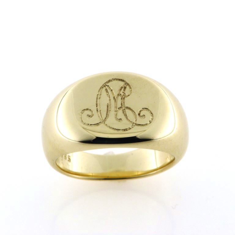 Ring, signetring massiv med fræset monogram, 14 kt. guld