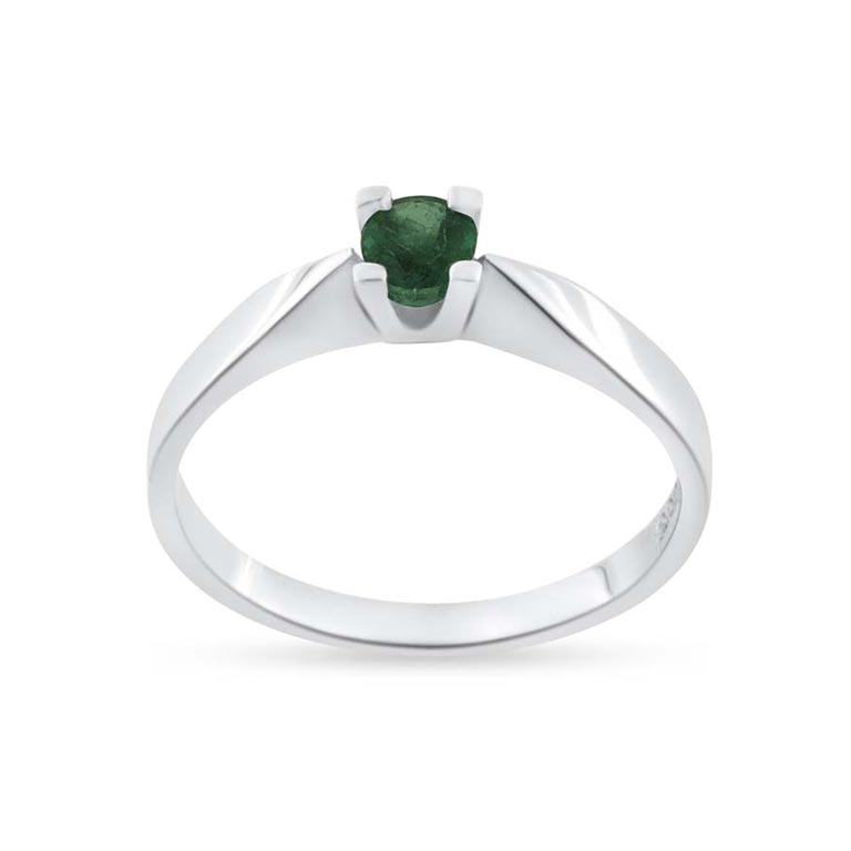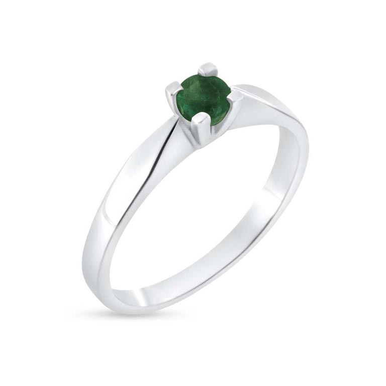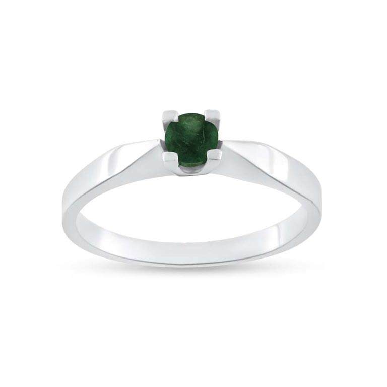Ring solitaire, 4,00 mm. ægte smaragd 14 kt. hvg.