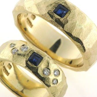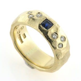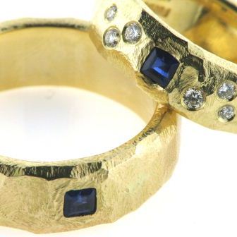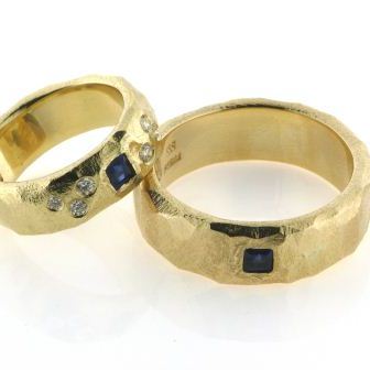 Ringe 14 kt. cárer slebne blå safirer og 6 brillianter
