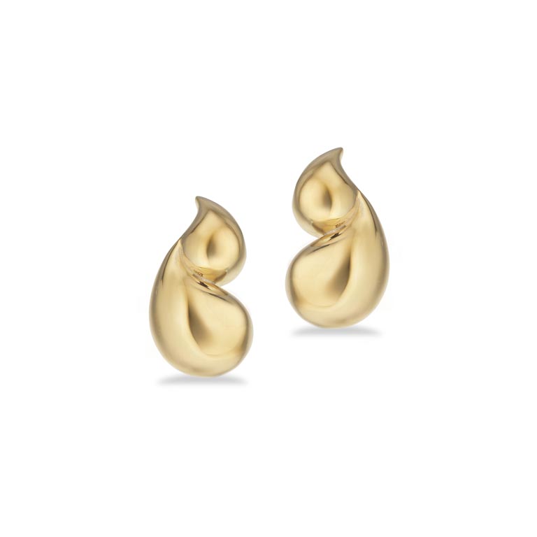 Disse øreringe fra Scrouples i forgyldt sølv har et blødt dråbeformet design med en let snoet form. Den blanke overflade fanger lyset og giver et roligt, elegant udtryk.